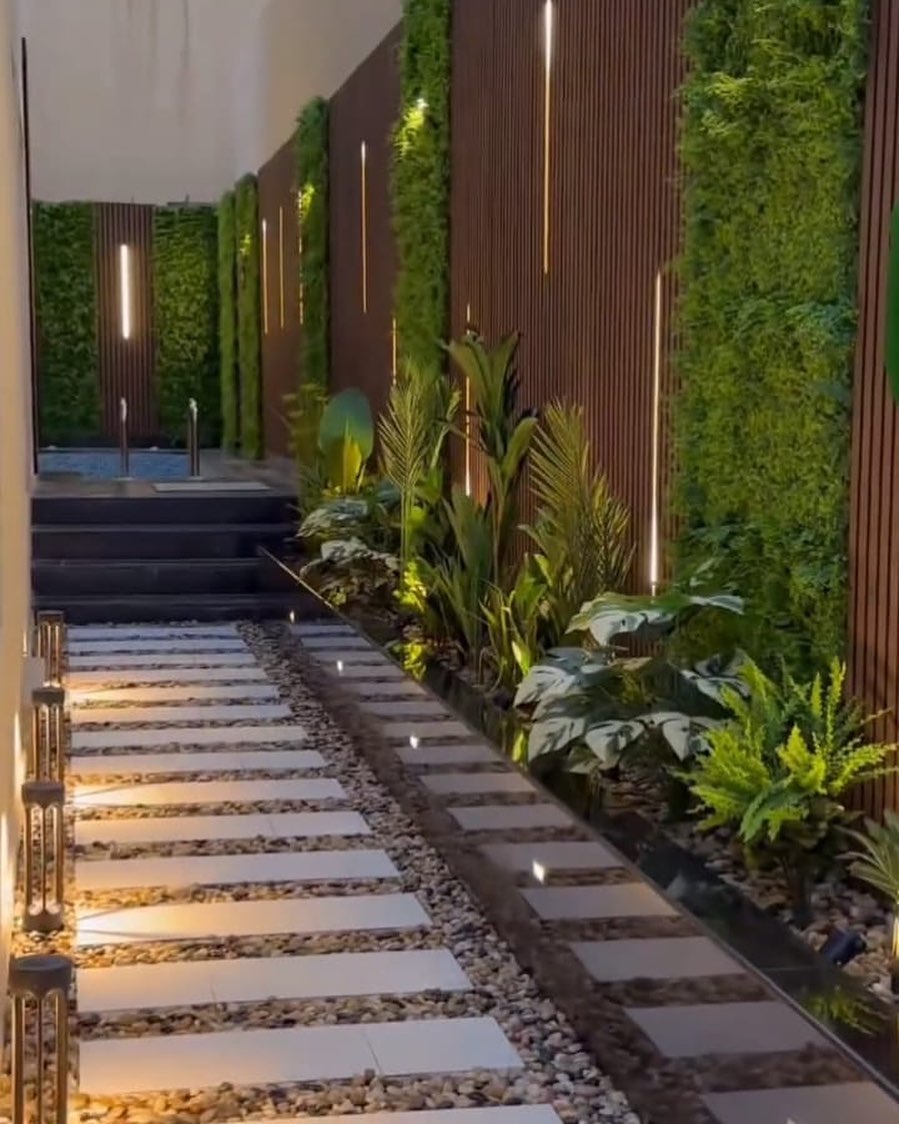 يشير إلى وضع العشب الاصطناعي على الجدران الداخلية أو الخارجية للمباني لإنشاء مظهر طبيعي وجمالي.