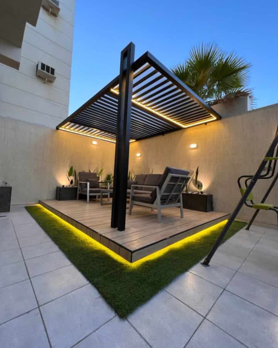 ثالثًا، توفر المظلات والبرجولات خيارات متعددة للتحكم في الإضاءة والظل. يمكن استخدام أقمشة مظلة معتمة لتخفيف الإشعاع الشمسي القوي وإنشاء ظلال مريحة، أو يمكن استخدام أقمشة شفافة للسماح بمرور الضوء الطبيعي وإضفاء جو من الهدوء والسحر.